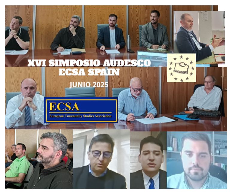 5-junio-2025 Asamblea General ordinaria de ECSA-Spain (Audesco) a las 11:30 horas. Facultad de CC Económicas y Empresariales (UCM). Pozuelo de Alarcón. Madrid XVI Simposio ECSA-Spain. Sala de Tesis del Decanato. Facultad de CC Económicas y Empresariales (UCM). Pozuelo de Alarcón. Madrid. Programa. Foto 12-septiembre-2024 Asamblea General extraordinaria de ECSA-Spain (Audesco) a las 11:30 horas. Facultad de CC Económicas y Empresariales (UCM). Pozuelo de Alarcón. Madrid XV Simposio ECSA-Spain. Sala de Tesis del Decanato. Facultad de CC Económicas y Empresariales (UCM). Pozuelo de Alarcón. Madrid. Programa. 21-enero-2020 Asamblea General extraordinaria de ECSA-Spain (Audesco) a las 10.00 horas. Centro de Estudios Políticos y Constitucionales. Madrid. 12:00 Seminario ECSA-Spain: "ECSA Spain y 30 años de la Acción Jean Monnet". Invitación, programa y foto. 2-octubre-2019 Conferencia Habla de Europa en tu Universidad. Universidad Complutense de Madrid (programa y fotos). 6-junio-2019 XIV Simposio ECSA-Spain. Sala de Tesis del Decanato. Facultad de Ciencias Económicas y Empresariales (UCM). Pozuelo de Alarcón (Madrid) 15-febrero-2019 Asamblea General extraordinaria de ECSA-Spain (Audesco) a las 12.00 horas. Sala del Decanato de la Fac de Económicas. UCM. Pozuelo de Alarcón (Madrid). 14-junio-2018 Asamblea General ordinaria de ECSA-Spain (Audesco) a las 10.00 horas. Sala de Tesis del Decanato de la Fac de Económicas. UCM. Pozuelo de Alarcón (Madrid). XIII Simposio ECSA-Spain. Sala de Tesis. Facultad de Ciencias Económicas y Empresariales (UCM). Pozuelo de Alarcón (Madrid) 2-junio-2017 Asamblea General ordinaria de ECSA-Spain (Audesco) a las 12.00 horas. Sala de Juntas del Decanato de la Fac de Económicas. UCM. Pozuelo de Alarcón (Madrid). XII Simposio ECSA-Spain. Sala de Juntas. Facultad de Ciencias Económicas y Empresariales (UCM). Pozuelo de Alarcón (Madrid) y Real Academia de Historia y Arte de San Quirce (Segovia) 10-junio-2016 XI Simposio ECSA-Spain. Facultad de Ciencias Económicas y Empresariales (UCM). Pozuelo de Alarcón (Madrid). Programa. 25-abril-2016 Asamblea General ordinaria de ECSA-Spain (Audesco) a las 12.00 horas. Sala de Reuniones del Decanato de la Fac de Económicas. UCM. Pozuelo de Alarcón (Madrid). 24-junio-2015 Catedráticos Jean Monnet ad personam de AUDESCO asisten en el Palacio Real de Madrid al 30 aniversario de la adhesión de España a las Comunidades Europeas. Foto 12-junio-2015 Asamblea General ordinaria de ECSA-Spain (Audesco) a las 12.00 horas. Sala de Juntas de la Fac de Económicas. UCM. Pozuelo de Alarcón (Madrid). X Simposio ECSA-Spain. Facultad de Ciencias Económicas y Empresariales (UCM). Fotos. 18-junio-2014 Asamblea General ordinaria de ECSA-Spain (Audesco) a las 12.00 horas. Sala de Juntas de la Fac de Económicas. UCM. Pozuelo de Alarcón (Madrid). IX Simposio ECSA-Spain. Facultad de Ciencias Económicas y Empresariales (UCM). Fotos. 7-junio-2013 Asamblea General ordinaria de ECSA-Spain (Audesco) a las 12.00 horas. Sala de Juntas de la Fac de Económicas. UCM. Pozuelo de Alarcón (Madrid). VIII Simposio ECSA-Spain. Facultad de Ciencias Económicas y Empresariales (UCM). 29-junio-2012 Asamblea General ordinaria de ECSA-Spain (Audesco) a las 12.00 horas. Sala de Juntas de la Fac de Económicas. UCM. Pozuelo de Alarcón (Madrid). VII Simposio ECSA-Spain. Facultad de Ciencias Económicas y Empresariales (UCM). 24-junio-2011 Asamblea General ordinaria de ECSA-Spain (Audesco) a las 12.00 horas. Sala de Juntas de la Fac de Económicas. UCM. Pozuelo de Alarcón (Madrid). VI Simposio ECSA-Spain. Facultad de Ciencias Económicas y Empresariales (UCM). (Fotos) 28-mayo-2010 V Simposio ECSA-Spain (Fotos) y Asamblea ordinaria (Fotos). Facultad de Ciencias Económicas y Empresariales (UCM) 24/26-mayo-2010 Asamblea ordinaria de ECSA-World y Global Jean Monnet Conference 2010. Bruselas. (Fotos) 9-octubre-2009 Asamblea ordinaria de ECSA-Spain (Audesco) a las 17.30 horas. Salón de Juntas de la Fac de Económicas. UCM. Pozuelo de Alarcón (Madrid). 7/9-septiembre-2009 Global Jean-Monnet Conference 2009. Bruselas 29-mayo-2009 IV Simposio ECSA-Spain y Asamblea ordinaria. Fundació Martí l'Humá (La Garriga-Barcelona). 13-mayo-2009 Acto sobre los Jóvenes y las Elecciones al Parlamento Europeo. Fac. CC Económicas. UCM. Pozuelo de Alarcón (Madrid). 13-febrero-2009 Asamblea ordinaria de ECSA-Spain (Audesco) a las 15 horas. Salón de Juntas de la Fac de Económicas. UCM. Pozuelo de Alarcón (Madrid). 24/25-noviembre-2008 Global Jean-Monnet Conference 2008: "A Europe of a Achievements in a Changing Wold". La Profesora Sara González, Presidenta de ECSA-Spain, expone como ponente invitada el trabajo: "Una política comercial estratégica y un modelo de I+D+i para la Unión Europea" 23-noviembre-2008 El Profesor Enrique Banús es elegido Presidente de ECSA-Wold por una amplia mayoría. 23/24-junio-2008 Intercultural Dialogue for the Greater Europe, The European Union and the Balkans. Zagreb (Croacia). 16-mayo-2008 III Simposio Internacional ECSA-Spain (Audesco). Universidad de Navarra. Información 10-marzo-2008 Asamblea ordinaria de ECSA-Spain (Audesco) a las 16 horas. Salón de Actos de la Fac de Políticas de la UNED. c/Senda del Rey 11. Madrid. 23/24-noviembre-2007 Reunión de presidentes de ECSAs en la Universidade de Coimbra (Portugal) 4-junio-2007 Acto de homenaje al Catedrático Europeo Jean Monnet, José Antonio Jáuregui, con motivo del segundo aniversario de su fallecimiento. Representación en España de la Comisión Europea. Ampliar. 25-mayo-2007 II Simposio ECSA-Spain (Audesco): "El Futuro de la UE a debate". Comisión Europea Universidad Complutense de Madrid ECSA-Spain (Audesco) 25-mayo-2007 Asamblea General ECSA-Spain. Sala de Juntas 11.30 horas Pabellón Central Facultad de CC. Económicas. Universidad Complutense de Madrid. 28-marzo-2007 Reunión Consejo ECSA-Spain (Audesco). Instituto de Estudios Europeos. Universidad San Pablo C